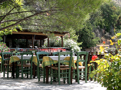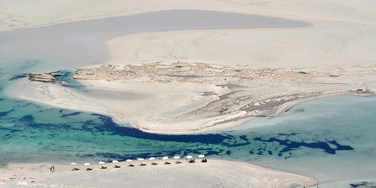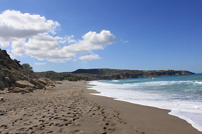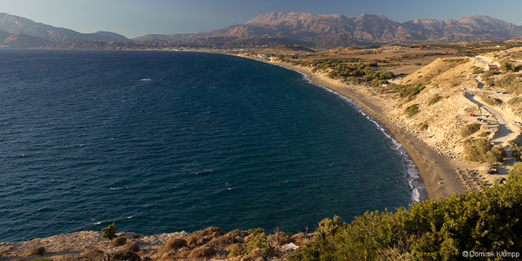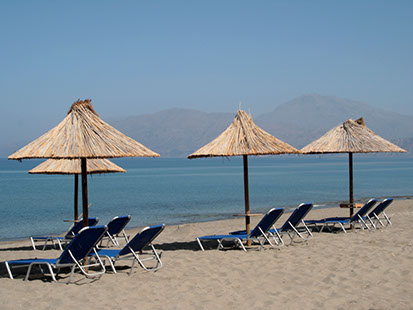 Parallel aan het kilometerslange zandstrand loopt een kleine promenade met diverse cafés en tavernes die bekend staan om een dagelijks wisselend aanbod aan verse vis en talloze Kretenzische specialiteiten. Diverse tavernes hebben aan het strand ligstoelen en parasols opgesteld waarvan de gasten gratis gebruik kunnen maken. Met uitzicht op de Paximadia-eilanden kunt u hier genieten van een ontspannen dagje strand.