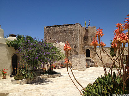 Het in een ruig landschap gelegen klooster lijkt in eerste instantie op een vesting en de majestueuze Xopateras-toren is in het verleden ook daadwerkelijk voor verdedigingsdoeleinden gebruikt. Priester Ioannis Markakis, ook bekend als Xopateras, verdedigde het klooster – aldus de overlevering – in 1828 met alle macht tegen de Turken. Toen hij inzag dat hij zich over moest geven, sprong hij uit het raam van de toren. Vandaag de dag is het klooster een oase van rust. Op de binnenplaats bevindt zich een kerkje met 600 jaar oude fresco's, een prachtige iconostase en waardevolle iconen.