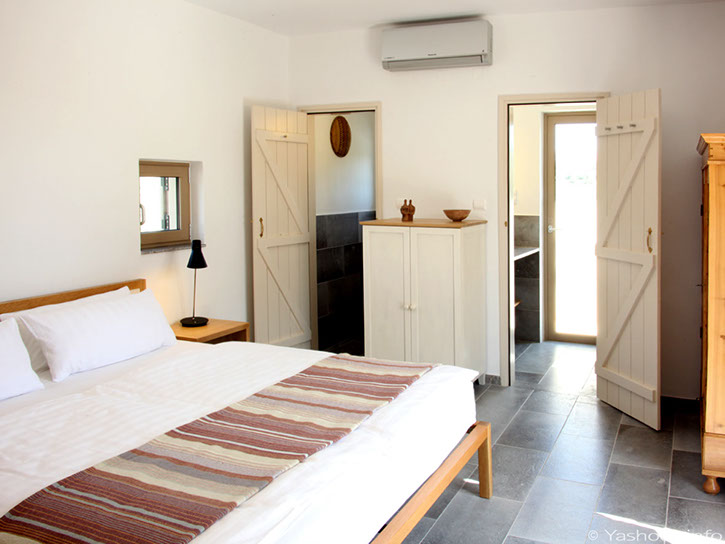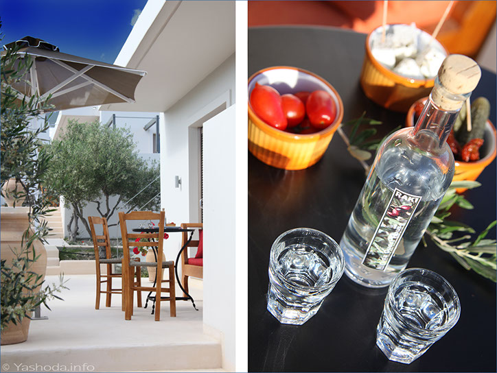 Each room has its own garden patio in the olive grove, a roof deck offering glorious views, a spacious bathroom with separate WC, and showers both inside and outside as well as air conditioning, internet access and a fridge. A television is available on request.