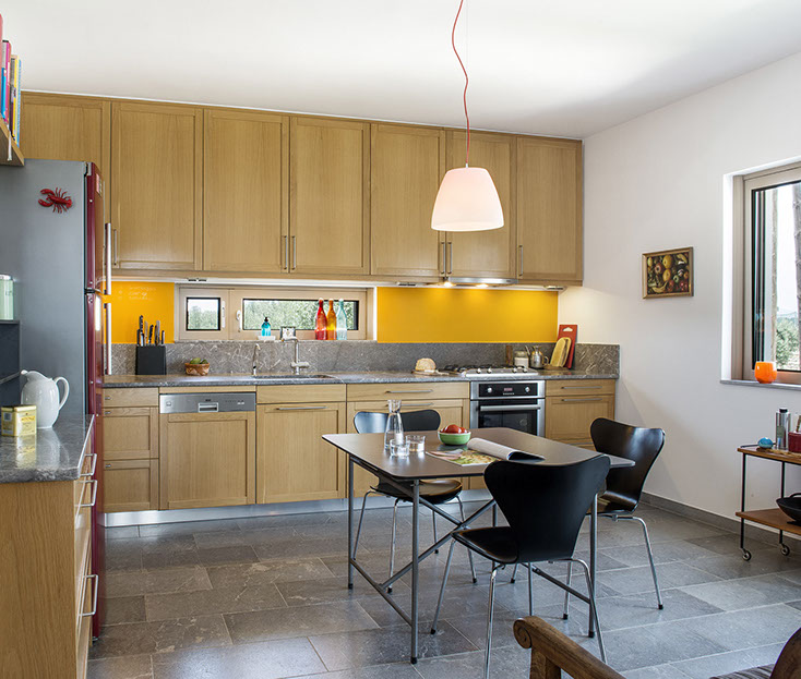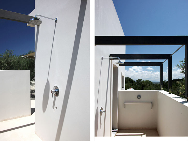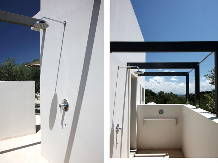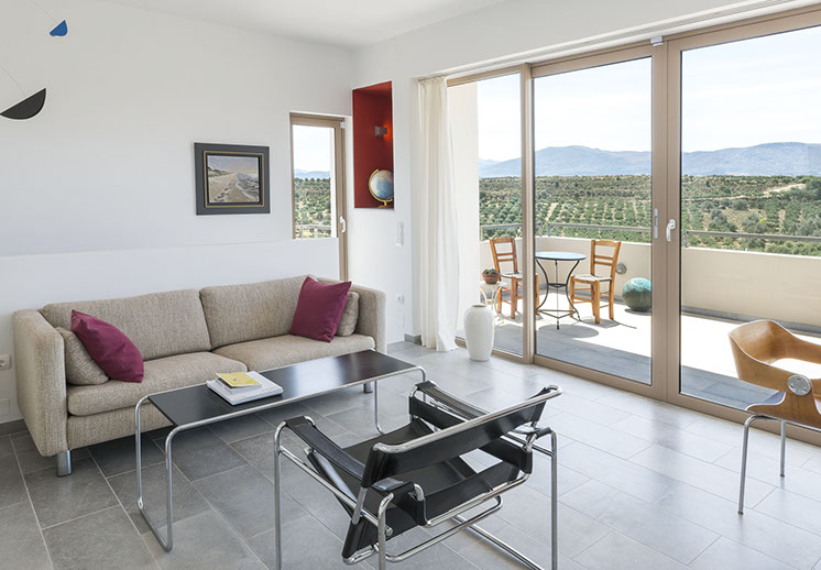 Das Niriida House wurde 2011 fertiggestellt und kombiniert eine klare Architektur mit modernstem Komfort. Das Haupthaus verfügt über eine große Wohnküche mit direktem Zugang auf die Süd-Ost-Terrasse. Neben der Küche befindet sich ein Arbeitszimmer mit Gästetoilette. Eine Treppe führt zum lichtdurchfluteten Wohnzimmer im Obergeschoss. Über das Panoramafenster gelangt man auf die Süd-Terrasse mit herrlichem Blick auf das Meer, die Berge und die Olivenhaine.