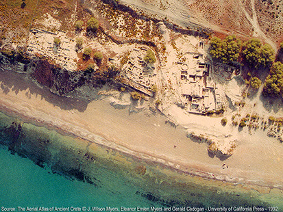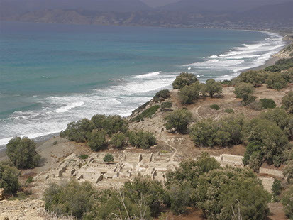 3 km north-west of Phaistos. The Minoan royal villa that once stood here was built in around 1550 BC. The rich hoard of precious objects that the site has yielded make it likely that the chieftain of Phaistos had his residence here. Major finds include fine soapstone vases, a wealth of tablets with inscriptions in Linear A and a intricately decorated sarcophagus.