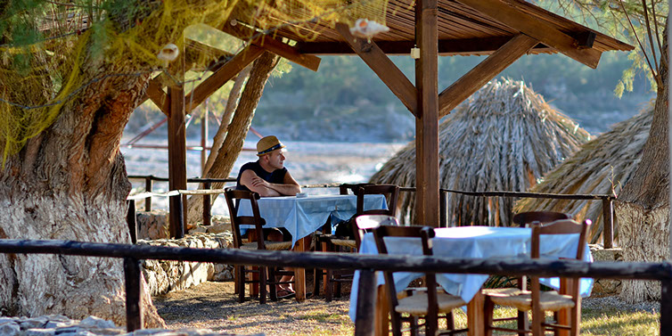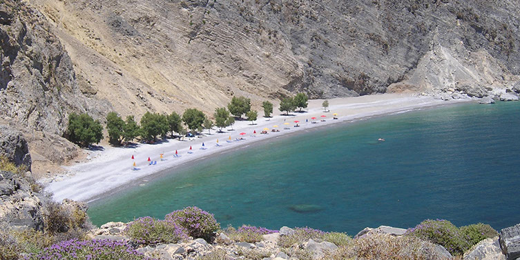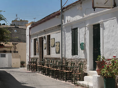 Parallel aan het kilometerslange zandstrand loopt een kleine promenade met diverse cafés en tavernes die bekend staan om een dagelijks wisselend aanbod aan verse vis en talloze Kretenzische specialiteiten. Diverse tavernes hebben aan het strand ligstoelen en parasols opgesteld waarvan de gasten gratis gebruik kunnen maken. Met uitzicht op de Paximadia-eilanden kunt u hier genieten van een ontspannen dagje strand.